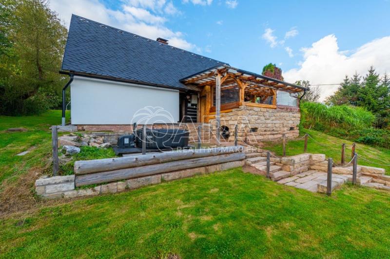 Prodej rodinného domu 4+kk, Hajnice okres Trutnov Nabízíme k prodeji rodinný dům s kouzlem po kompletní rekonstrukci (2020), který se nachází v klidné části obce Hajnice. Dům s celkovou užitnou plochou 115 m stojí na prostorném pozemku o výměře 1 471 m, jenž poskytuje dostatek místa pro odpočinek, zahradničení i volnočasové aktivity. Dům je zděný, částečně roubený a nabízí dispozici 4+kk: Přízemí: obývací pokoj s kuchyňským koutem, pokoj pro hosty (aktuálně využíván jako šatna), koupelna s WC, chodba a technická místnost. Podkroví: dva útulné pokoje, z nichž jeden se pyšní velkými průhledy do okolního prostranství, které krásně propojují domov s přírodou. Sklep: původní pískovcový sklep s krásnou valenou klenbou. Střecha byla kompletně rekonstruována, včetně nového krovu a zateplení minerální vatou. Na střeše je kvalitní krytina Kapako. Dům je celkově zateplen minerální vatou i polystyrenem, což zajišťuje nízké provozní náklady. Velkou přidanou hodnotou je prostorná terasa ze štípaného pískovce a masivního dřeva, ideální pro posezení v létě i v zimě. Dominantou domu je pískovcové schodiště před domem a kaskádovitě upravený pozemek, který dodává celé nemovitosti jedinečný charakter. Za domem se nachází rovinatý pozemek, vhodný pro zahrádkáře, ale také jako skvělé místo pro dětské vyžití. Součástí je zahradní domek o výměře cca 36 m, který poslouží jako zázemí pro údržbu pozemku či dílna. K dispozici jsou rovněž tři parkovací místa za oploceným pozemkem. Pro milovníky chovu velkého plemene psů je pod terasou připraven velkorysý kotec, který je zateplen jak ze spodu, tak shora polystyrenem. Obec Hajnice nabízí veškerou občanskou vybavenost mateřskou a základní školu, poštu, restauraci i zdravotnické zařízení. Výborná dopravní dostupnost do Trutnova a Dvora Králové nad Labem je zajištěna pravidelným autobusovým spojením. Příjezdová cesta je asfaltová a pohodlně sjízdná celoročně. Pokud hledáte klidné a komfortní bydlení v příjemné lokalitě, tento dům je ideální volbou. Pro více informací a sjednání prohlídky nás neváhejte kontaktovat. S financováním Vám rádi poradíme.