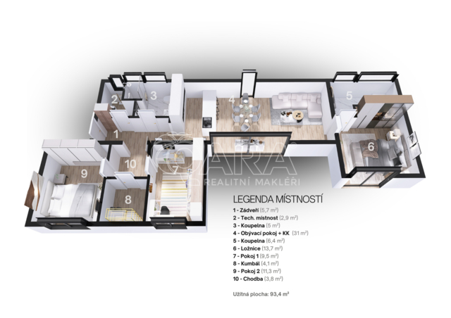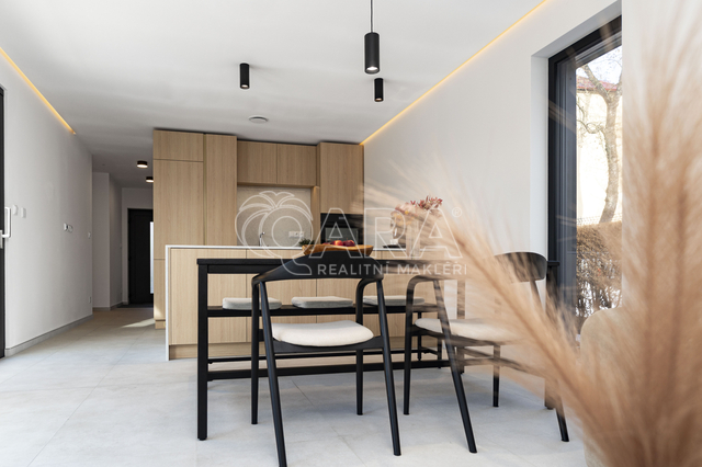 Moderní nízkoenergetický rodinný dům s velkým pozemkem v Havířově – Prostřední Suchá Pokud hledáte moderní, komfortní a klidné bydlení, které je připravené k okamžitému nastěhování, mohl by vás zaujmout tento nový rodinný dům 4+kk v žádané části Havířova – Prostřední Suché. Dům stojí na rovinatém pozemku o velikosti 1 006 m², který nabízí dostatek prostoru pro zahradu, relax i soukromí. Díky orientaci a umístění domu zde panuje klidná atmosféra vhodná pro dlouhodobé bydlení. Dům a dispozice Jedná se o moderní nízkoenergetickou dřevostavbu, která je dokončená a připravená k okamžitému užívání. Dispozice 4+kk je navržena prakticky a funkčně, s důrazem na každodenní pohodlí a dostatek světla. Obytný prostor je přirozeně propojen se zahradou a vytváří příjemné místo pro rodinný život i relax. Dům je kompletně napojen na veškeré inženýrské sítě – elektřinu, vodovod, kanalizaci i dešťovou kanalizaci. Komfort a technologie Dům nabízí vysoký standard moderního bydlení bez zbytečných kompromisů. Komfort zajišťuje mimo jiné: podlahové vytápění s možností regulace po zónách rekuperace vzduchu pro zdravé vnitřní klima kvalitní hliníková okna s venkovním stíněním prvky chytré domácnosti pro pohodlné ovládání vybraných funkcí Součástí domu je také instalovaný wallbox pro nabíjení elektromobilu, který podtrhuje připravenost domu na současný i budoucí způsob bydlení. Pozemek a exteriér Pozemek je oplocený, s hotovým oplocením a vstupní elektrickou hliníkovou branou, zajišťující soukromí i bezpečí. Součástí zahrady je také samostatný zahradní domek, praktický pro uložení nářadí či sezónních věcí. Venkovní plochy jsou funkčně připravené a jejich finální úpravy, jako terasa či zpevněné plochy, lze doladit dle vlastních představ nového majitele. Exteriér domu doplňuje provětrávaná fasáda v kombinaci modřínového dřeva a falcovaného plechu, která podtrhuje architekturu domu a přispívá k jeho dlouhodobé kvalitě Interiér Interiér domu je navržen v moderním a nadčasovém stylu s důrazem na kvalitu a funkčnost. Dům se prodává včetně vybavení, takže umožňuje nastěhování bez nutnosti dalších investic a zajišťuje maximální pohodlí hned od prvního dne. Shrnutí moderní novostavba nízkoenergetický provoz klidná lokalita s dostatkem soukromí velký rovinatý pozemek vysoký standard vybavení a technologií připraveno k okamžitému nastěhování Domov, který je hotový, funkční a připravený na nový začátek. A protože dům je nový, čeká vás navíc pětiletá záruka. Domov, který je hotový a připravený k okamžitému nastěhování.