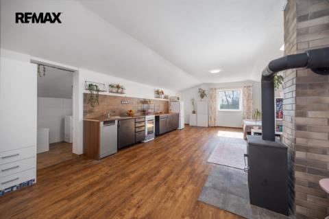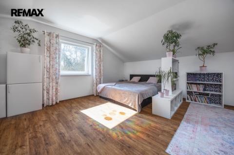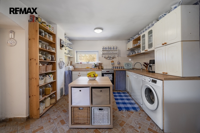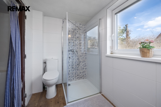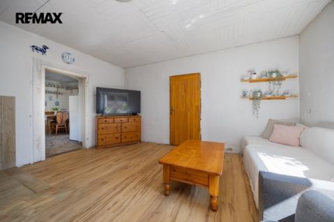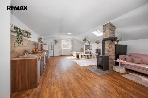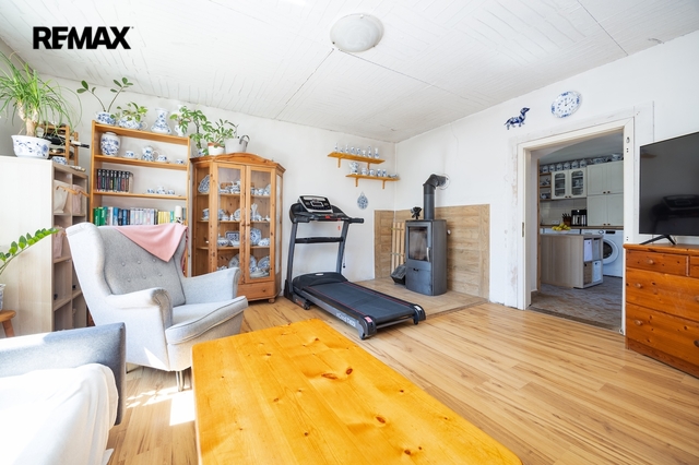 Nabízím k prodeji rodinný dům v obci Skůry (Hobšovice), který představuje zajímavou kombinaci venkovského klidu a velmi dobré dostupnosti do Prahy. Lokalita se nachází mezi hlavními tahy na hlavní město, díky čemuž se na jeho okraj dostanete autem přibližně za 30 minut. Dům má původ v kamenné stavbě z roku 1900, která prošla postupnou přestavbou a rozšířením z původního jednoho podlaží na dvoupodlažní bydlení. Aktuální užitná plocha činí přibližně 121 m², přičemž je zde navíc nedokončená místnost o velikosti cca 25 m². Po jejím dokončení tak lze celkovou plochu domu rozšířit až na cca 146 m². Velikost pozemku je 293 m². Dispozice domu je aktuálně řešena jako 3+1 se dvěma koupelnami a WC, přičemž v patře se navíc nachází kuchyňský kout, což umožňuje variabilní využití prostoru například pro vícegenerační bydlení nebo oddělené fungování jednotlivých podlaží. V přízemí se nachází obývací pokoj o velikosti 23 m², ložnice 14 m², kuchyň 15 m², koupelna s WC 6 m², samostatné WC 1,5 m², komora 2,5 m² a vstupní zádveří se schodištěm do podkroví o velikosti 8 m². V patře je otevřený obytný prostor o velikosti 46 m², který aktuálně slouží jako obývací pokoj se spaním a kuchyňským koutem. Dále je zde koupelna s WC o velikosti 5 m² a nedokončená místnost o velikosti cca 25 m², kterou lze využít například jako další pokoj. Interiér domu je v dobrém a obyvatelném stavu, což umožňuje okamžité užívání bez nutnosti zásadních investic. V přízemí je vytápění řešeno krbovými kamny s teplovodním výměníkem napojeným na radiátory, v patře pak krbovými kamny bez rozvodu. Ohřev vody zajišťuje elektrický bojler pro koupelny a průtokový ohřívač pro kuchyni. Technický stav odpovídá průběžné rekonstrukci – elektroinstalace je v mědi a rozvody vody jsou v plastu. Střecha je nová s taškovou krytinou. Dům aktuálně nemá dokončenou fasádu, do budoucna je tedy vhodné provést zateplení a finální úpravu. Odpad je řešen jímkou s pravidelným vývozem (cca 1x ročně). K dispozici je také kopaná studna, která slouží například pro praní, splachování toalety nebo zavlažování zahrady. Parkování je možné přímo před domem na ulici, kde bez problémů zaparkují až 4 vozy. Obec Hobšovice nabízí klidné venkovské bydlení a základní občanskou vybavenost. Kompletní infrastruktura, včetně škol, školek, obchodů a služeb, je dostupná v nedalekém Slaném nebo Velvarech. Dopravní obslužnost zajišťují autobusové linky s návazností na další spoje do Prahy. Tato nemovitost je ideální pro někoho, kdo hledá bydlení s potenciálem dalšího rozšíření a úprav dle vlastních představ, a zároveň chce zůstat v rozumné dojezdové vzdálenosti od Prahy. Prodávající si vyhrazuje právo vybrat kupujícího na základě jím zvolených kritérií.