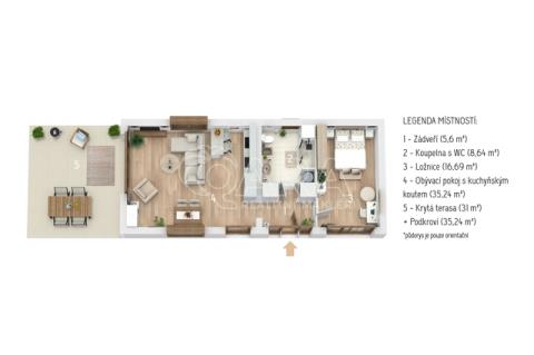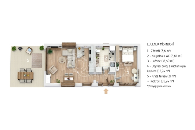 Nad kuchyňským koutem je velkorysý otevřený prostor o rozloze 35 m², který je přístupný po skládacím žebříku. Tento jedinečný pokojíček se hodí jako pokoj pro hosty, ateliér nebo třeba dětský koutek, odkud si užijete nádherný výhled. A to není vše! Novostavba skrývá promyšlené designové prvky, jako jsou pouzdrové dveře a dveře do koupelny, které jsou šikovně schované ve skříni. Tyto detaily je nejlepší vidět naživo. Energetický štítek náročnosti budovy (PENB) vychází na kategorii B.