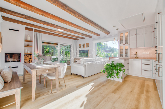 Tato novostavba 2+kk s podlahovou plochou 101 m2, dokončená v roce 2023, nabízí moderní a klidné útočiště. Její interiér je plný promyšlených designových detailů, které vás ohromí. O teplo se stará podlahové vytápění a o příjemnou atmosféru krbová kamna. Okna jsou osazena trojskly a moderními francouzskými roletami. Kuchyň je v laku, vyrobená na míru s kvalitními vestavnými spotřebiči. K domu náleží zahrada o rozloze 1 280 m² s úžasnou pergolou a výhledem do lesa. Parkování pro dvě auta je na pozemku zajištěno.
