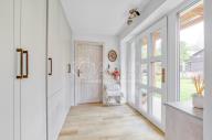 Chytré detaily: V domě najdete pouzdrové dveře a dveře do koupelny, které jsou šikovně schované ve skříni, což dodává prostoru čistý, minimalistický vzhled.