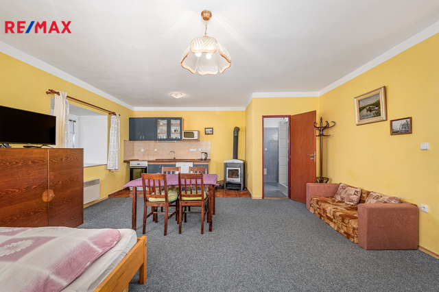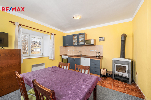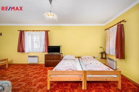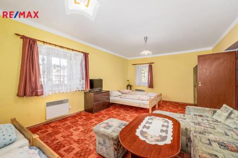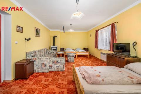 Jste velká rodina, která chce bydlet pohromadě, nebo se jen rekreačně setkávat, či podnikat v oblasti ubytování, a to vše v lokalitě srdci přírody se širokým sportovním a rekreačním využitím? Obec Horní Vltavice se nachází v klidné části Šumavy, horní zakončení Hornovltavické brázdy pod Basumským hřbetem. V obci je MŠ, ZŠ, obchod, lyžařský areál… . Další lyžařský areál je v obci Kubova Huť/3 km. Dále cyklostezky, stezky pro pěší, nedotčená příroda. Hraniční přechod Strážný (SRN)/8 km. Samostatně stojící nemovitost se nachází na klidném a slunném místě obce, mimo hlavní komunikaci. K domu náleží pozemek o výměře 280 m2. Parkování u domu. Celková užitná plocha nemovitosti je 247 m2. Vše rozloženo v 1. NP bez podsklepení. DISPOZICE: 4x samostatný pokoj, 3x kuchyňský kout, 3x koupelna se sprchovým koutem a toaletou. Dále velký sklad, možnost individuálního využití např. dílna, kolárna/lyžárna atd. Nechybí technická místnost s boilery, toaletou a prostorem pro čistící prostředky, vysavač a další náležitosti k údržbě domu. Některé pokoje jsou odděleny pouze příčkou, tudíž lze dispozice upravit. Půdorys nemovitosti k dispozici v sekci fotografie. Součástí domu je stodola s výměrou 57 m2. Je zcela na novém majiteli, jak prostor využije. Může zde parkovat, skladovat dřevo na otop atd. Nesmíme opomenout velkou půdu, která nabízí dalších 200 m2 k využití podlahové plochy. Výhodou je přístup po betonovém schodišti přímo z obytné části domu. Dům je napojen na obecní vodovod a kanalizaci. Vytápění je řešeno el. topidly a 2x krbová kamna. Koupelny mají el. podlahové topení. Dům se prodává vč. kompletního vybavení. K domu je projektová a stavební dokumentace. Zatím není vyhotoven PENB, proto je uvedena hodnota „G“. Doporučujeme prohlídku! V případě otázek, nebo zájmu o prohlídku kontaktujte makléře nabídky. Výhodné financování zajistíme zcela zdarma.