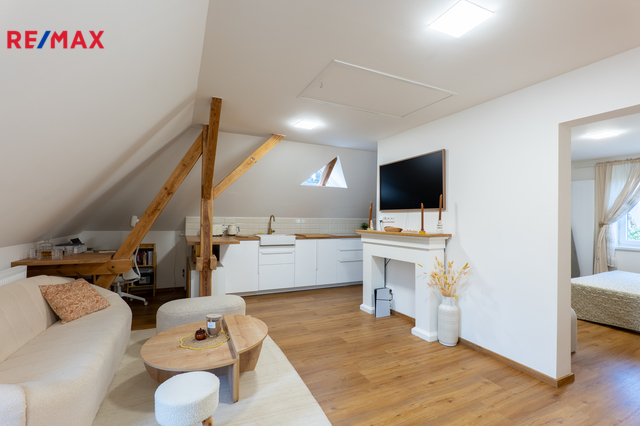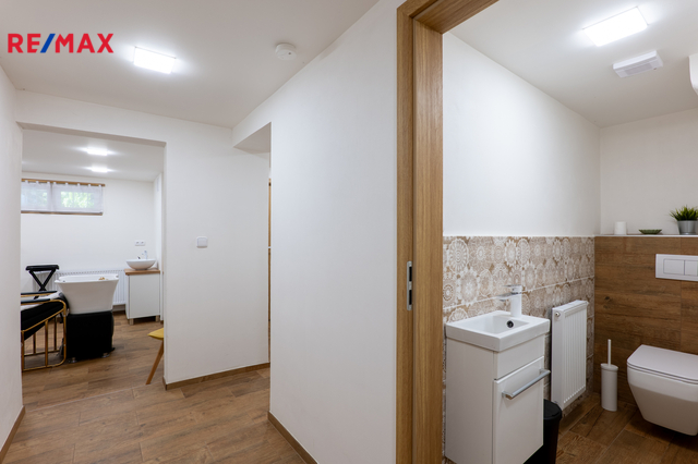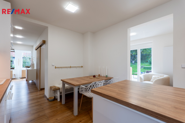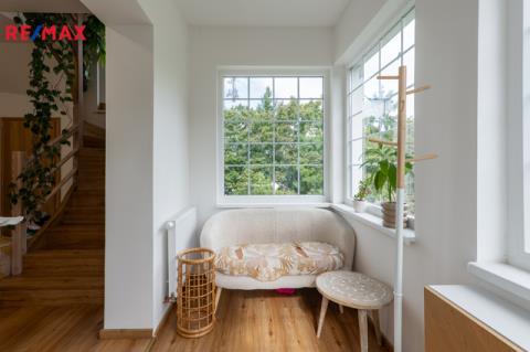 Stylová prvorepubliková vila s možností podnikání – Hořovice Nabízíme prvorepublikovou vilu z roku 1938 po velmi citlivé designové rekonstrukci interiéru. Dům se nachází v klidné ulici Na Hořičkách v Hořovicích a nabízí celkovou podlahovou plochu 169 m², dispozici 2+1 a 2+kk + samostatný prostor pro podnikání (nyní kadeřnický salon) se samostatným vstupem. Prostorná zahrada se vzrostlými stromy o výměře 555 m2 Dispozice domu: Suterén (43 m²): prostor pro podnikání s technickým zázemím. Vhodné i pro zřízení další bytové jednotky (garsonky). 1. NP (70 m² vč. verandy): obývací pokoj se vstupem na zahradu, kuchyně IKEA se spíží (pracovní deska v dekoru zlatý dub, dvířka bílý lesk, spotřebiče IKEA – trouba, mikrovlnná trouba, digestoř, indukční deska, myčka, osvětlení), malý pokojík se vstupem na terasu, koupelna s výhledem do zeleně. Na podlahách vinyl Aquafix Click (RCB deska se silnými zámky, voděodolný, odolný proti poškrábání, akustická podložka 18 dB, certifikát Greenguard), v koupelně a v suterénu dlažba, na stěnách nové sádrové omítky. Podkroví (57 m²): jednotka 2+kk s koupelnou a balkonem. Výklopná dvířka se schůdky na půdu. Technické informace: Okna plastová s trojskly, na francouzských oknech v 1. NP předokenní elektrické žaluzie. Vytápění kvalitním plynovým kotlem Protherm (stáří 1,5 roku). Kompletně nové rozvody elektřiny, vody a odpadů (stáří 1,5 roku) včetně nové přípojky. Zateplení podlah, stropů i půdy. Dřevěný krov ve velmi dobrém stavu, střešní krytina kanadský šindel (stáří cca 20 let). Inženýrské sítě: elektřina, vodovod (nová přípojka), kanalizace, plyn v kapličce na hranici pozemku. Zahrada o výměře 555 m² s mírným sklonem, samostatný vstup do malého sklepu na uchování potravin a nářadí, terasa 24 m² v 1. NP, balkon ve 2. NP. Parkování přímo před domem pro cca 3 auta. Lokalita – Hořovice: Město nabízí kompletní občanskou vybavenost – tři základní školy, gymnázium, střední školu a SOŠ, mateřské školky, nemocnici s vyhlášenou porodnicí, čtyři lékárny, sportovní halu se zimním stadionem, tenisové kurty a fotbalová hřiště přímo pod domem. V blízkosti jsou také restaurace a kavárny. Hořovice se pyšní skvělou dopravní dostupností do Prahy i Plzně – autem (D5 EXIT 34), vlakem (přímo na Hlavní nádraží v Praze nebo Plzni), autobusem do Berouna i Příbrami. Více informací vám ráda sdělím po telefonu. Domluvte si svou prohlídku. Těším se na setkání.