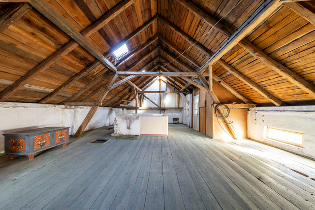 Naproti rodinnému domu se nachází stavba bývalého chléva s jedním nadzemním podlažím a podkrovím. Objekt je v dobrém stavu, průběžně udržovaný a aktuálně slouží jako sklad a zázemí pro zvířata. V zadní části pozemku stojí stodola, jejíž součástí je vestavěná garáž a několik menších skladových prostor. Předmětem prodeje jsou však pouze dvě třetiny této stavby, jelikož část přesahující na sousední pozemek je ve vlastnictví souseda. Stodola je vnitřně rozdělena příčkou a zároveň slouží jako průchod na zbývající část zahrady. Součástí prodeje je dále také garáž, umístěná uprostřed zahrady na hranici pozemku.