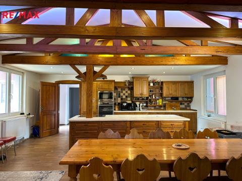 Nabízíme k prodeji rodinný dům 6+kk s dílnou a garáží v obci Hošťka u Tachova. Dvoupodlažní zděná stavba nabízí prostorné bydlení, dílnu na jakékoliv ruční práce, garáž, parkovací místa a louku. První nadzemní podlaží včetně koupelny a celé dílny prošlo rekonstrukcí. Druhé podlaží - dvě místnosti - jsou určené k rekonstrukci. V prvním podlaží se nachází velmi prostorná kuchyně s obývacím pokojem a jídelnou, koupelna s WC a tři samostatné obytné místnosti. Ve druhém podlaží jsou celkem dvě obytné místnosti. Do dílny se vstupuje dveřmi v zadní části domu. Dům je napojen na městský rozvod vody, elektřiny a kanalizace. Vytápění je zajištěno kotlem na pevná paliva, ohřev vody elektrickým bojlerem. K domu náleží pozemek o celkové výměře 2.784 m2. Lokalita nabízí klidné bydlení v přírodě s dobrou dostupností do Německa. Hraniční přechod je vzdálen cca 6 km od domu. Pro více informací kontaktujte realitního makléře.