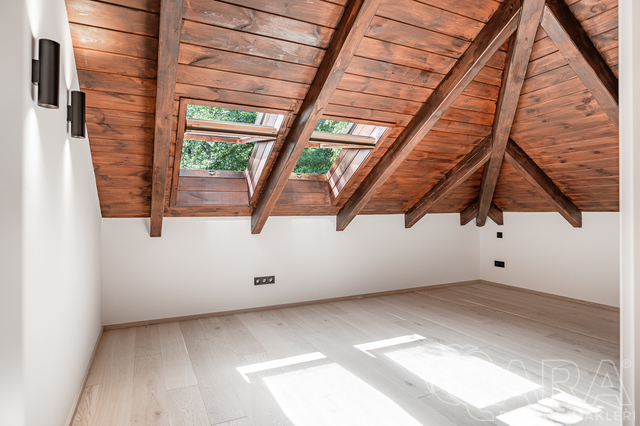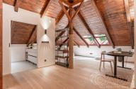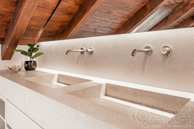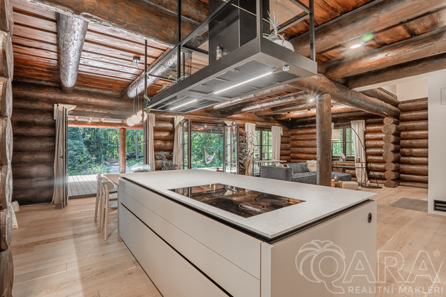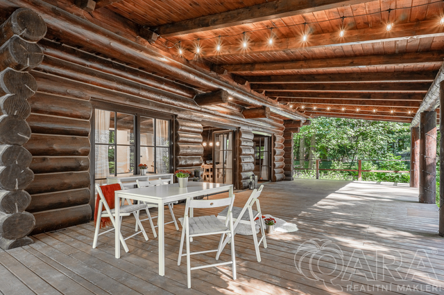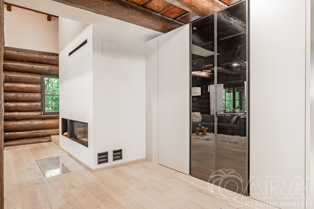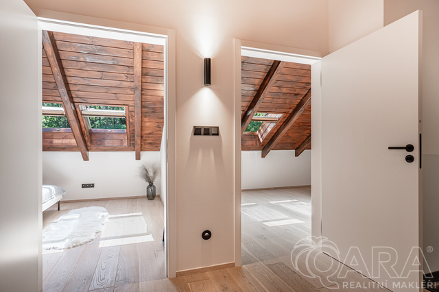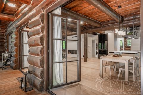 Moderní srub 4+kk, 156 m² s terasou 100 m² na lesním pozemku 4 830 m² – Kersko, 20 min od Prahy Hledáte místo, kde se příroda stává součástí vašeho každodenního života, aniž byste se museli vzdát pohodlí moderního světa? Tento srub v Kersku je přesně tím místem – spojením klidu lesa, vůně dřeva a komfortu současného bydlení. Kersko – místo, které inspirovalo Bohumila Hrabala – kousek od Prahy, přesto se tu budete cítit, jako byste byli světem dál. Hrubá stavba byla realizována v roce 2019 renomovanou firmou z kvalitního smrkového dřeva, ošetřeného ekologickou olejovou lazurou . Trámy se nechaly dva roky přirozeně proschnout a „usednout“. Poté proběhla promyšlená dostavba podle návrhu architekta stavební firmou, nic svépomocí. V roce 2024 byla stavba dokončena, zkolaudována a zapsána na katastru jako rodinný dům s číslem popisným. Energetická třída B – maximum dosažitelné pro srubové stavby. Dispozice a interiér Přízemí • Vstupní hala s vestavěnými skříněmi na míru s LED osvětlením a velkoformátovou italskou dlažbou • Hlavní obytný prostor (64 m²) – kuchyňská část s velkým ostrůvkem, kvalitními vestavnými spotřebiči a filtračním systémem na pitnou vodu • Obývací část s velkým zaskleným krbem a sedací soupravou na míru • Přímý vstup na terasu o velikosti 100 m² z evropského modřínu, s přípravou pro venkovní kuchyň • Koupelna se sprchovým koutem a odděleným WC • Komora/špajz a technická místnost s protipožární izolací Patro • Dvě prostorné ložnice (19 m² každá) • Otevřené atrium (27 m²) využité jako pracovna/společenská místnost, s možností přestavby na třetí ložnici • Koupelna s vanou a WC Technologie a vybavení • Tepelné čerpadlo (vzduch–voda) + kotel + zásobník 300 l, dálkové ovládání přes mobilní aplikace • Podlahové topení v obou podlažích (1NP – beton, 2NP – suchý systém) • Krb 7–16 kW se svislým kouřovodem Schiedel • Alarm Jablotron, detektory kouře • Napojení na městský vodovod + vlastní studna pro užitkovou vodu • Bezobslužná ČOV pro 5 osob • Pálená keramická střešní krytina Lokalita Kersko je proslulé svým přírodním parkem a Hrabalovou stezkou. Najdete zde restaurace, lesní kavárnu, tenisový klub, golfové hřiště a umělecký ateliér. Výborná dostupnost: • Praha – 20 min • Poděbrady – 20 min • Nymburk – 20 min • Čelákovice – 15 min Pro více informací a domluvení prohlídky mě kontaktujte. Tento srub není jen nemovitostí – je to harmonické propojení přírody a moderní technologie.