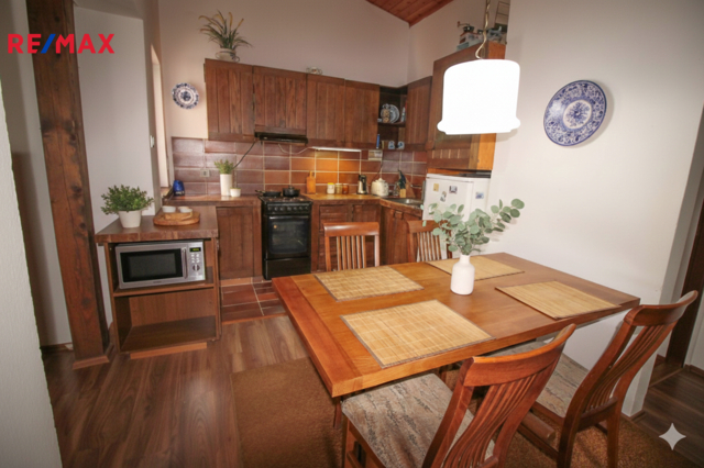 Nabízíme k prodeji patrový rodinný dům z roku 1983 v obci Hrdějovice, vzdálené 5 km od centra Českých Budějovic. Dům o zastavěné ploše 122 m2 je samostatný, nepodsklepený, obklopený zahradou o ploše 589 m2. Prostor mezi garáží a asfaltovou příjezdovou komunikací je zastřešen- zastřešené parkovací stání o ploše 37 m2. Obytná část je dispozičně řešena jako 4+1 o obytné podlahové ploše 144 m2 + technické zázemí 34 m2+garáž 16 m2 + skleník 12 m2+ balkon 21 m2. V přízemí rodinného domu se nachází předsíň (6 m2), koupelna s WC ve výstavbě (4 m2), pokoj (19 m2), kotelna (8 m2), garáž (16 m2), prádelna (7 m2), dva sklady (7 a 4 m2) a chodba (20 m2). U vstupu je dále k dispozici velký skleník (12 m2). Do 2 NP je přístup točitými dřevěnými schody. Zde se nachází prostorný obývací pokoj (45 m2) s krbem, kuchyně s jídelním koutem (16 m2) , dva pokoje (8 m2 a 12 m2) a koupelna s WC, umyvadlem a vanou (5 m2). Z obývacího pokoje je možný vstup na balkón (21 m2). Točitými schody z obývacího pokoje je přístupná galerie nad obývacím pokojem (12 m2). V kuchyni je osazen dřez, elektrický sporák, elektrická trouba, digestoř a lednice s mrazákem Dispoziční řešení domu najdete na přiloženém půdorysu. Dům je v původním, udržovaném stavu. Je vhodný k rekonstrukci dle potřeb nového majitele. Podlahové krytiny tvoří lepený vinyl, plovoucí podlahy a dlažba. Vytápění je řešené plynovým kotlem nebo splynovacím kotlem na dřevo (pevná paliva). V obývacím pokoji jsou krbová kamna. Ohřev vody zajišťuje bojler (plyn). Objekt je napojený na obecní přípojku vodovodního řad, kanalizaci, elektřinu a plyn. Pozemek je kompletně oplocen, přístup je z asfaltové komunikace plechovými vraty. Zahrada je osázená okrasnými dřevinami a ovocnými stromy. Lokalita: v klidné rezidenční čtvrti, v blízkosti lesa, MHD. Dojezdová vzdálenost 10 minut do Českých Budějovic. V případě zájmu o více informací nebo prohlídku, kontaktujte makléře nabídky. V případě více zájemců bude upřednostněna nejvyšší nabídka.