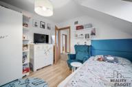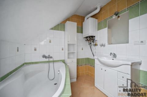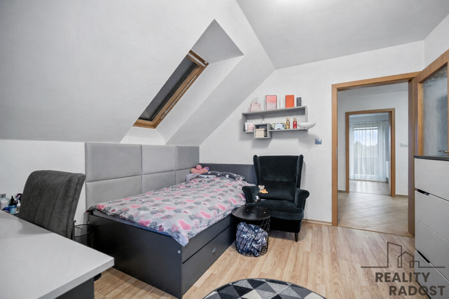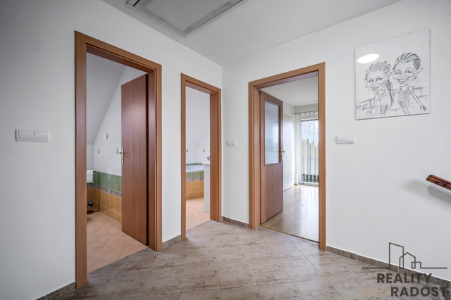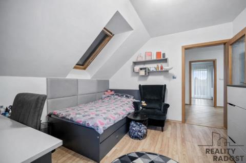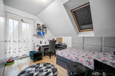 V přízemí je navíc prostor, který skvěle poslouží jako pracovna, nebo jako pokoj pro hosty. Patro domu pak nabízí soukromou část – dva pokoje pro děti, ložnici s šatnou, koupelnu a samostatné WC. Každý člen rodiny tu má svůj vlastní prostor.