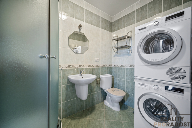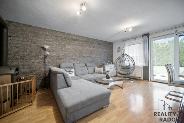 Hned po vstupu vás přivítá praktická předsíň, ze které se plynule dostanete do hlavní obytné části domu. Obývací pokoj propojený s kuchyní je přirozeným srdcem celého domu – místem, kde se potkává rodina, kde se vaří, povídá a tráví společný čas. V chladnějších dnech atmosféru dotváří krbová kamna, která dodají domu příjemné teplo i pocit skutečného domova. Přímý vstup na zahradu vybízí k letnímu posezení, ranní kávě nebo večernímu grilování.