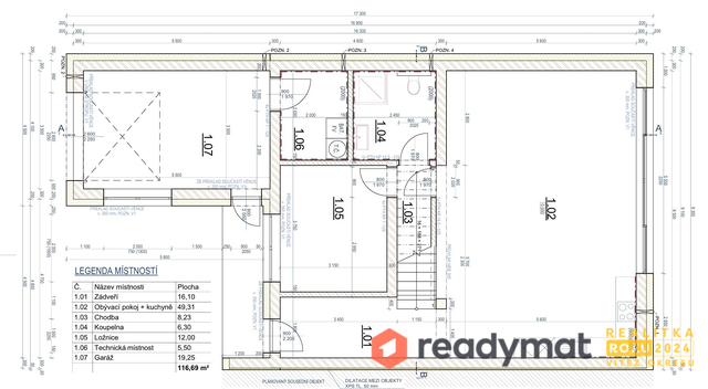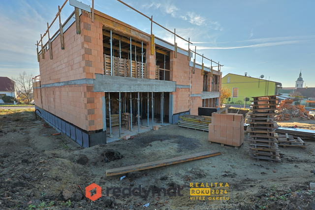 Hledáte bydlení, které kombinuje moderní komfort, prostorný pozemek pro budoucí potřeby rodiny a klidnou lokalitu? Pak právě pro vás je tento rodinný dům na klíč ideální volbou. K tomu připočtěte krásné výhledy do krajiny, výborné dopravní spojení a kompletní občanskou vybavenost města – a máte zajímavý koktejl plný chutí k životu. Průběžně doplňujeme fotky z výstavby. Domy rostou. Autem od domu dojedete do 34 minut do OC Olympia Brno, do 18 minut Therme Laa v Rakousku či Aqualandu Moravia a za 30minut do Znojma. Moderní technologie pro pohodlí i úsporu • Energetická efektivita: Dům je navržen jako nízkonákladový, s přípravou na instalaci fotovoltaické elektrárny (FVE). Retenční nádrž (jímka) pro zpětné využití dešťové vody pro zahradu. • Vytápění a chlazení: Tepelné čerpadlo Buderus zajišťuje ohřev vody a teplovodní podlahové vytápění Rehau, které oceníte v každém ročním období. Každý pokoj je vybaven přípravou pro klimatizaci pro optimální klima v domě. • Izolace a soukromí: Plastová okna s trojskly, HS portál a venkovní žaluzie zajišťují klid, soukromí i dokonalé zatemnění. Promyšlená dispozice • Přízemí (1. NP): - Prostorná garáž a technická místnost. - Vstupní chodba s dostatkem místa na odkládání. - Obývací pokoj s kuchyňským koutem a přímým vstupem na zahradu. - Samostatný pokoj (pracovna, ložnice nebo hostinský pokoj). - Koupelna se sprchou a toaletou. • Patro (2. NP): - Tři samostatné pokoje, každý s vlastní šatnou. - Velká koupelna s vanou a toaletou. - Přístup na prostornou terasu. Celková dispozice domu: 5+kk, garáž, technická místnost, dvě koupelny, terasa. Užitná plocha domu je 216 m², celková plocha pozemku 491 m² (z toho zahrada cca 330 m²). Bezpečnost na prvním místě Dům bude vybaven bezpečnostním systémem Jablotron – dvě kamery se záznamem a šest pohybových čidel, ovládaných přes dvě klávesnice. Standardy a možnosti přizpůsobení V ceně je zahrnuta příprava na kuchyň (samotnou kuchyň si vybíráte dle vlastního vkusu). Součástí standardu jsou také: • Interiérové dveře Sapeli. • Finální povrchy podlah, stěn, stropů. • Návrh a vizualizace koupelen ve specializovaném studiu. • Zahradní terasa, oplocení a nezámrzný ventil. • a mnoho dalšího. Každý detail lze upravit podle vašich preferencí. Na ceně se odrazí případné odchylky od standardů – úspory i příplatky spolu budeme podrobně projednávat. Stavba a termíny Výstavba domu začala v únoru 2025 přípravou terénu a základovou desku. Dokončení s předáním je plánováno na druhou polovinu roku 2026. Na realizaci bude dohlížet zkušený stavitel pp-stavební a realitní makléř, kteří vás provedou celým procesem až po předání klíčů. Reference od majitelů již dokončených projektů vám rádi zprostředkujeme. Chcete se dozvědět více? Kontaktujte nás a společně projdeme všechny podrobnosti.