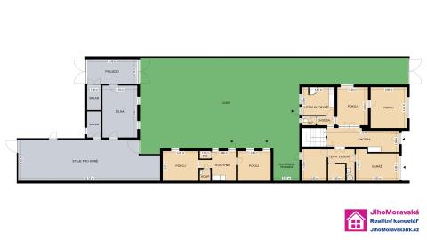 Hledáte prostorný rodinný dům se zahradou a možností vícegeneračního bydlení? Ve výhradním zastoupení majitelky, Vám zprostředkujeme koupi rodinného domu o velikosti 6+2 a výminkem ve dvoře domu o velikosti 2+1. V obci Javorník č.p. 268, okr. Hodonín. Zastavěná plocha domu je 314 m² s pozemkem o celkové ploše 4102 m². Užitná plocha všech nemovitostí je 228 m² s podlahovou plochou 322 m². Dispozice domu: 1. nadzemní podlaží: předsíň, chodba, dva pokoje, toaleta, kuchyň, schodiště, garáž, technická místnost a sklad (95 m²) 2. nadzemní podlaží: schodiště, chodba, koupelna (s vanou a WC) a čtyři pokoje a pokoj s kuch. koutem a jídelnou, velikost 4+kk, (98 m²). dvůr: výminek o velikosti 2+1 (35 m²), kryté posezení, dílna, dva skladovací prostory, průjezd (garáž) a stáje pro koně Celkové aktuální měsíční náklady na provoz celé nemovitosti jsou ve výši 4.700 Kč (elektřina, plyn, stočné). Dům je napojen na vlastní studnu. Mateřská školka a základní škola (do 5. stupně) se nachází 2 minuty chůze od domu. Vedle škole je také sportovní areál s vyžitím pro malé i větší děti. Pro milovníky zimních sportů se nachází cca 10 minut chůze od domu lyžařský vlek. Mate-li rádi procházky přírodou, můžete se celoročně procházet v rekreační oblasti Filipov, která dle navazuje na Velkou Javorinu a slovenske Kopanice. Obec Javorník sousedí s obcí Velká nad Veličkou, kde se nachází kompletní občanská vybavenost. Do Veselí nad Moravou dojedete za 20 minut, Uherského Hradiště za 35 minut nebo do Hodonína za 40 minut. Ihned k předání. Zaujala Vás tato nabídka? Máte zájem o prohlídku? Vám vyhovující termín prohlídky (datum a čas) s kontakty na Vás (e-mail + tel. číslo) zasílejte formou odpovědi na tuto inzerci. Realitní makléř Vás následně bude telefonicky kontaktovat.