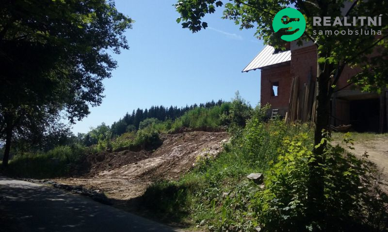 Pozemek v velmi mírném svahu o výměře 2 077 m² je orientován převážně na jih a umožňuje v souladu s územním plánem výstavbu ještě jednoho domu. Plocha pozemku určená k výstavbě: 600 m². Aktuálně zastavěno cca 250m² i s plánovanou zpevněnou plochou. Příjezd po asfaltové, 5 let nové koncové obecní komunikaci, celoročně udržované s minimálním provozem. Na pozemku u domu rovné místo pro parkování šesti vozů a součástí stavby je garáž.