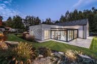 Celoroční využití (jídelna / relaxační zóna), podlahové vytápění, přímý vstup na zahradu, dálkově ovládané stínění ISOTRA