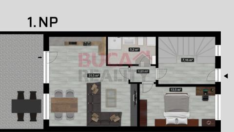 Nabízíme Vám k prodeji novostavbu krajního řadového domu v novém developerském projektu „Slunečný vrch“ v Kaplici cca 30 km od Českých Budějovic. Dům je dispozičně řešený jako 5+kk o velikosti 142 m2 s parkovacím stáním pro dvě auta, oplocenou zahradou a terasou. 1. NP sestává ze vstupní předsíně, prostorné kuchyně s obývacím pokojem, ložnice a koupelny s toaletou. V 2. NP se nachází 3x obytný pokoj (ložnice a 2 dětské pokoje), předsíň a koupelna s toaletou. Velkou výhodou dvoupodlažního domu je dostatek soukromí pro každého člena rodiny. Terasa o rozloze 21 m2 a zahrada o rozloze 373 m2 orientovaná na jihozápad Vám poskytne prostor na odpočinek a krásný výhled na Novohradské hory. Při výstavbě je kladen důraz na kvalitu, dlouhou životnost stavby a energetickou úspornost domu (PENB C – úsporná). Dům bude vytápěn plynovým kondenzačním kotlem s rozvody podlahového topení ve všech podlahových plochách domu. Součástí domu při předání jsou podlahové krytiny, vybavení koupelen, obložky, dveře a každý kupující může ovlivnit konečnou podobu výběrem dle vlastního přání. Projekt „Slunečný vrch“ Vám nabízí jedinečné bydlení v blízkosti přírody a klidné části města, ale přesto v dosahu kulturního dění. Na nemovitost Vám zajistíme vhodné financování a dům si můžete rezervovat. Více informací Vám rádi poskytneme v naší kanceláři.