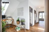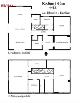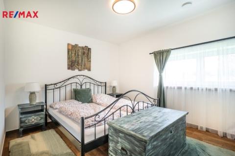 Dispoziční řešení bytové jednotky 4 + kk o užitné ploše 160 m2 se rozprostírá v prvním a druhém nadzemním podlaží. 1.NP se sestává ze vstupního zádveří a chodby 12 m2, kuchyně s jídelním koutem propojené s obývacím pokojem 44 m2, ložnice 13 m2, koupelny 5 m2 s prostorem pro prádelnu, dvou skladů - šaten, WC a technické místností 9 m2. Do 2.NP se vstupuje po dřevěném schodišti a najdeme zde dva prostorné pokoje, koupelnu, WC, sklad či šatnu a pracovní kout. Orientační půdorys jednotlivých místností najdete ve fotodokumentaci.