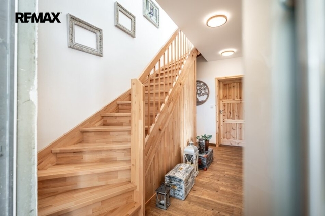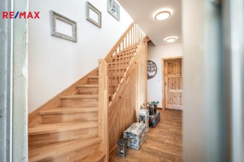 Interiér domu je kompletně hotový, velmi vkusně zařízený včetně moderní kuchyně a je laděn do harmonického celku, každý detail je součástí promyšlené koncepce příjemného bydlení.