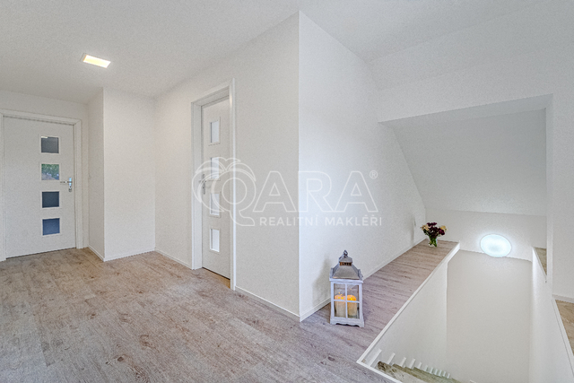 Obytné podkroví: Nabízí dvě samostatné, světlé místnosti (velká cca 25m2 a malá cca10m2) a koupelnu s vanou a toaletou.