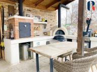 Na dům navazuje venkovní kuchyň se sporákem ( propan butan), pecí, udírnou, grilem, dřezem a úložnými prostory. Z venkovní kuchyně je vstup do samostatné místnosti, kterou lze využít k jakémukoliv účelu ( aktuálně tělocvična se saunou). Zahrada je rovinatá se vzrostlými stromy ( jabloně, broskev, mandloň, vrby aj.), ovocnými keři a je ideálním místem pro klidné venkovní posezení. Nachází se zde krytý uzamykatelný přístavek, který může sloužit uvnitř jako úložný prostor zahradnických potřeb, dřeva, nářadí a z venkovní části jako kryté venkovního posezení.