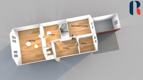 Patrový dům s podlahovou plochou 120 m² je dispozičně řešen jako 3+1. V dolním patře je chodba, obývací pokoj, kuchyň, technická místnost, koupelna s wc a vanou. V horním patře nad schodištěm se nachází chodba, wc, dva samostatné pokoje a šatna.