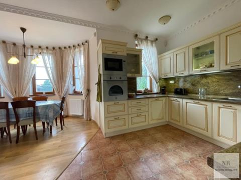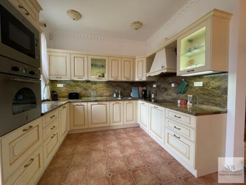 Nabízíme k prodeji rodinný dům v obci Kolová, okres Karlovy Vary, umístěný v klidné lokalitě, ideální pro větší rodinu. Tento samostatný patrový dům s třemi podlažími je postaven z cihlového materiálu a nachází se na pozemku o rozloze 741 m². Zastavěná plocha domu činí 152 m² a užitná plocha dosahuje 372 m², což poskytuje dostatečný prostor pro komfortní bydlení. Nemovitost je ve velmi dobrém technickém stavu, což je výsledkem pečlivé údržby jejích majitelů. Moderní vybavení zahrnuje saunu, vířivku a vlastní bar, které vytvářejí příjemný prostor pro relaxaci a odpočinek. Zahrada, pečlivě udržována, je osázena okrasnými keři a vzrostlými tújemi, které zajišťují dostatek soukromí. Interiér domu se skládá z prostorného obývacího pokoje s krbem, jídelnou a moderně vybaveným kuchyňským koutem s vestavěnými spotřebiči. Vstupní chodba je vybavena šatnou a sociálním zařízením. V suterénu se nachází šatna, prádelna, sklad, bar, vířivka, sauna a sprcha, což umožňuje maximální využití tohoto prostoru. V mezipatře je umístěna prostorná ložnice se šatnou a koupelnou. Druhé patro nabízí tři další pokoje, z nichž každý má vlastní šatnu. Dvě ložnice mají vlastní koupelnu, zatímco na chodbě se nachází další koupelna. Z jedné ložnice je přístup na balkon s krásným výhledem na okolní krajinu. Dům se může pochlubit praktickým rozložením s celkem pěti toaletami a čtyřmi koupelnami. Přístup do garáže je zajištěn z mezipatra a v zadní části nemovitosti je umístěno tepelné čerpadlo, které přispívá k energetické efektivnosti a pohodlnému vytápění. Tato nemovitost představuje jedinečnou příležitost pro ty, kteří hledají prostorné a komfortní bydlení v klidné lokalitě s výbornou dostupností do okolních měst. V případě zájmu o prohlídku nás neváhejte kontaktovat.