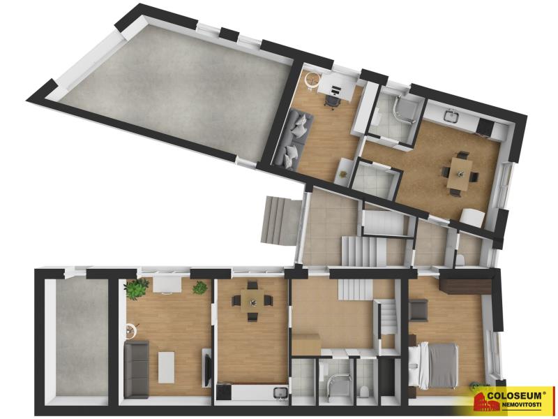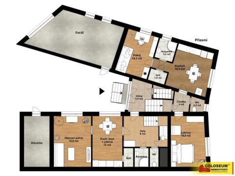 Exkluzivně Vám nabízíme k prodeji prostorný cihlový rodinný dům v malebné obci Komňa, nacházející se v klidné lokalitě obklopené přírodou Bílých Karpat. Dům o přibližné užitné ploše 146 m² nabízí velkorysé dispoziční řešení 5+2 s možností jednoduchého rozdělení na dvě samostatné bytové jednotky (3+1 a 2+1), ideální např. pro vícegenerační bydlení nebo pronájem. Součástí domu je velmi prostorná garáž a pohodlné parkování je možné také přímo před domem. V suterénu se nacházejí rozlehlé sklepy o ploše cca 40 m² s prádelnou. K odpočinku vybízí menší terasa a k dispozici je také prostorná "dřevárka" pro uskladnění paliva nebo nářadí. Dům je napojen na vodovod, kanalizaci a elektřinu. Vytápění je řešeno kotlem na tuhá paliva. Nemovitost je vhodná pro trvalé bydlení i rekreaci. Pro lepší představu o možném budoucím stavu jsme pro Vás vypracovali vizualizace a samozřejmě přikládáme i půdorys celého domu. Komňa je obec v okrese Uherské Hradiště ve Zlínském kraji. Leží v chráněné krajinné oblasti na úpatí Bílých Karpat. Žije zde 535 obyvatel. PENB uvádí třídu G. Nemovitost lze financovat hypotečním úvěrem s jehož vyřízením Vám rádi pomůžeme. Veškeré uvedené plochy jsou přibližné a mají orientační charakter. Pro více informací nebo domluvení prohlídky nás neváhejte kontaktovat.