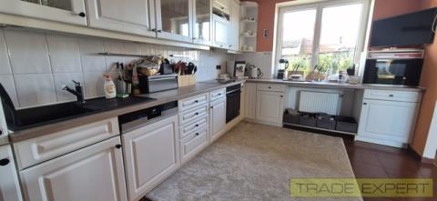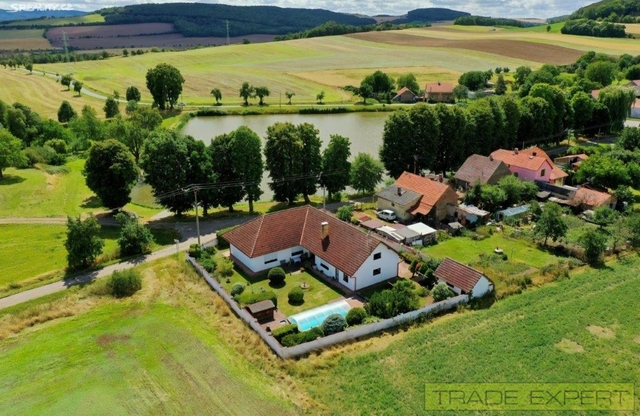 Prodej RD 5+kk, s užitnou plochou 236 m2, Korno, okr. Beroun. Prostorný rodinný dům o výměře 236 m2, dispozičně 5+kk se nachází na okraji Korno v krásném a klidném místě. Plocha pozemku je 1063 m2 Dispozice: vstup do zádveří a následně do haly. Z haly vstup do tří pokojů, kuchyně a prostorného obývacího pokoje s krbovými kamny a vstupem na terasu. . V podkroví se nachází další samostatná obytná místnost a dalších 200 m2 půdy je možné adaptovat k bydlení. Jedna garáž (30m2) je integrovaná v domě, druhá samostatná garáž 15 m2 se nachází na pozemku vedle domu, Dům byl kolaudován v roce 1994. Dům je zateplený, má vlastní studnu, a je připojen na kanalizaci. Vytápění: elektrokotel + krbová kamna. Kuchyň je osazena spotřebiči Siemens. Vzrostlá a udržovaná zahrada, ohraničení pozemku zdí, bazén se slanou vodou 7x3x1.3 metru. na terase je nově umístěná pergola. Parkovací místa pro 5 aut, brána na DO, předokenní rolety. Podlahy: předsíň, koupelna a hala - keramické dlažby, 3 pokoje lepený vinyl, obyvací pokoj lakované parkety. Možno přenechat včetně nábytku. V okolí domu je krásná příroda, 2 km od Karlštejna, 10 km od Berouna na nájezdu na D5. 25 min jízdy autem od Prahy. Dům je možné financovat hypotečním úvěrem.