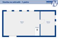 V druhém nadzemním podlaží se nacházejí 2 větší a jeden malý pokoj, vhodný jako pracovna. Je zde i koupelna a samostatné WC.