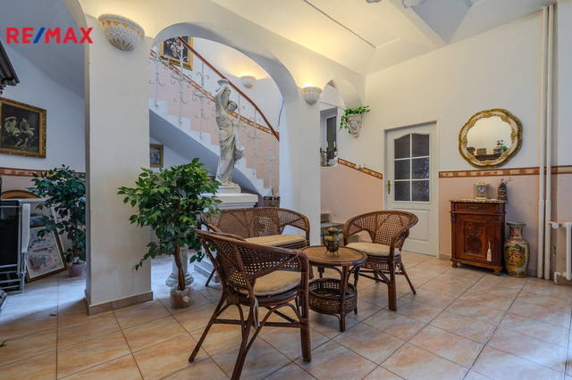 Celková užitná plocha domu je 489 m2 včetně sklepů (84m2). K domu náleží udržovaná zahrádka, dílna a prostor pro relaxaci s pergolou.