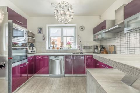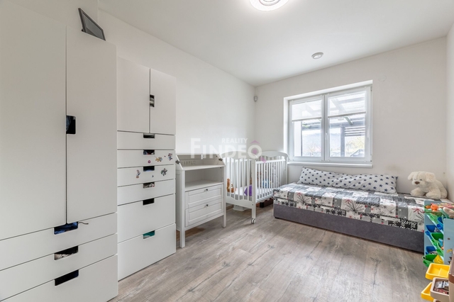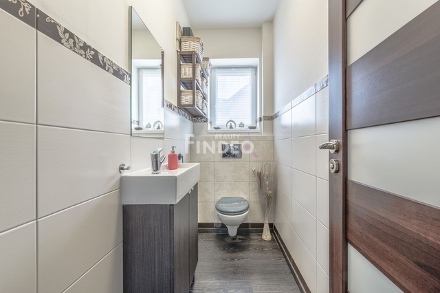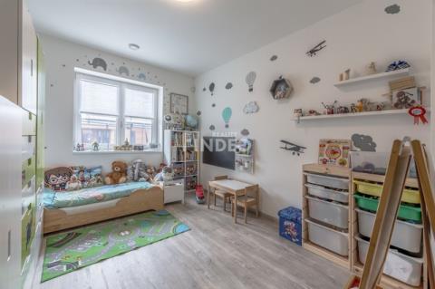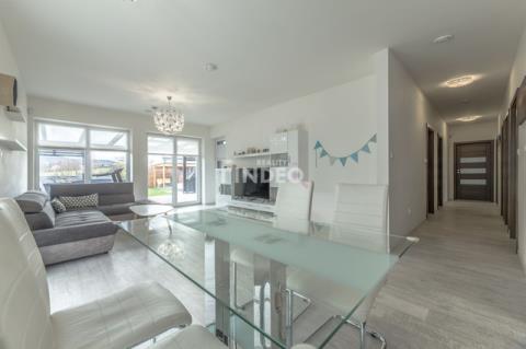 Dominantou domu je světlý a prostorný obývací pokoj s přímým vstupem na terasu a do zahrady. Kuchyňský kout je od obývací části opticky oddělen jídelnou a barem a je zde k dispozici velká kuchyňská linka se všemi vestavěnými spotřebiči. V domě se dále nachází ložnice rodičů, dva dětské pokoje, technická místnost, v které je prostor i na případnou pracovnu. V případě, že by někomu chyběl pokoj, je možné technickou místnost přestavět na další pokoj, což měli současní majitelé v plánu. Praktická dispozice poskytuje dostatek soukromí rodičům i dětem.V domě je dále k dispozici prostorná koupelna se sprchovým koutem a vanou, samostatné WC, předsíň a chodba. V technické místnosti a předsíni jsou k dispozici velice prostorné vestavěné skříně.