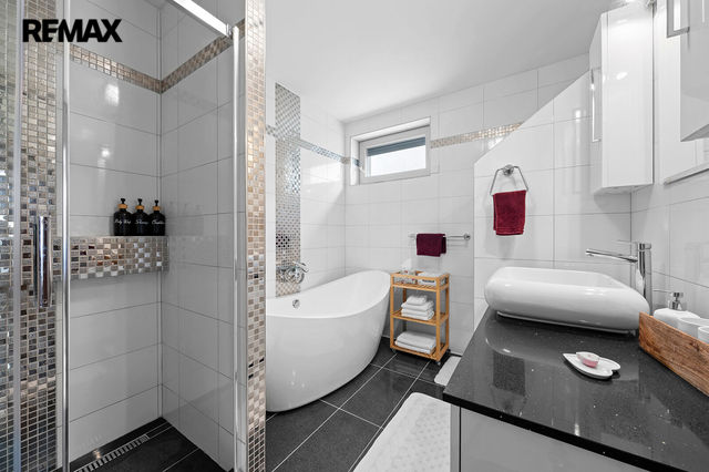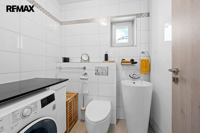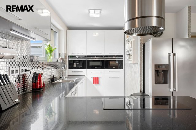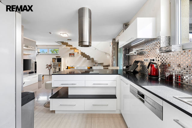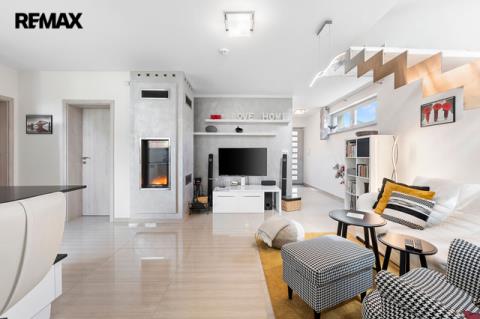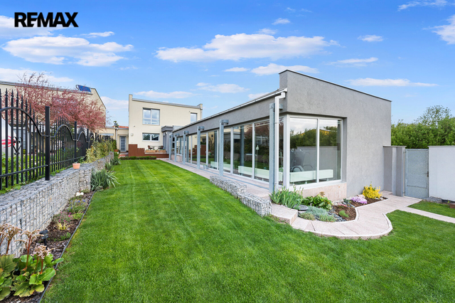 Hledáte dům, který má něco navíc? Který zároveň leží poblíž Říčan u Prahy jakožto dlouhodobě nejlépe hodnoceného města v ČR? Představujeme moderní prostorný dům v hi-tech elegance stylu s vlastním wellness, garáží a zahradou. Dispozice interiéru je 6+kk s dvěma koupelnami pro komfortní bydlení. Dům rovněž nabízí možnost dvougeneračního využití nebo spojení bydlení s podnikáním. Interiér je ve vysokém lesku - velkoformátová dlažba, mozaikový obklad, dekorativní stěrky v kombinaci s otevřenými prostory včetně schodiště vytváří vzdušný, světlý a moderní vzhled. Nízkoenergetická stavba třídy A zkolaudována roku 2019 s celkovým pozemkem 701 m2 a s užitnou plochou přes 260 m2 disponuje skvělými nadstandardy a detaily. Vytápění je pomocí tepelného čerpadla s napojením na podlahové topení, k dispozici je rovněž prosklený čelní krb. V celém domě jsou okna s izolačním trojsklem a venkovními elektrickými roletami. Ke klidu a bezpečí přispívá kamerový bezpečnostní systém. Na střeše je dostatek prostoru pro realizaci fotovoltaického systému s již hotovou přípravou resp. propojením do technické části domu. Rovněž jsou hotovy rozvody na využití centrálního vysavače. Další přidanou hodnotou jsou bezesporu dvě terasy - v přízemí navazuje na jídelní místnost se vstupem na zahradu, kde je umístěna otevřená zahradní kuchyně. V horním patře jde spíše o prostorově skromnější terasu. Obě s přímým pohledem na zahradu. Na zahradě se nachází samostatná budova s vlastním wellness, kde kromě sauny, vířivky až pro 6 osob, je i bazén s protiproudem, prostor pro cvičení a relaxaci, menší kuchyň, šatna a veškeré sociální zázemí. Stejně jako v domě, i zde je díky materiálovému provedení a prosklení ze tří stran světlost a moderní vzhled. Rekuperační jednotka zajišťuje řízené větrání v hlavním prostoru. V suterénní části této budovy se nachází úložné prostory a technické zázemí pro celý dům. Pokud byste uvažovali nad podnikatelským využitím wellnesového prostoru, je to možné i díky samostatnému vchodu ze zadní části. Toto a oddělení od domu bylo zamýšleno účelně pro maximální soukromí a relaxaci. Horní část zahrady je koncipována jako odpočinková, spodní část je využívána především pro pěstování plodin. Nachází se zde prostorný skleník. Značná úspora a soběstačnost je dosažena díky retenční nádrži na sběr dešťové vody a především díky vrtu s hloubkou přes 40m. Dům i zahrada lze zanechat s veškerým vybavením a je tedy možné ho okamžitě obývat. Nemovitost nabízí další skvělé prvky, které Vám rádi představíme osobně při prohlídce. V obci se nachází základní občanská vybavenost. Díky kombinaci klidného venkovského prostředí a městské infrastruktury v blízkém okolí, je místo vhodné pro ty, kteří hledají rovnováhu mezi klidem a dostupností služeb. Prohlídkový den se bude konat po předchozí telefonické či emailové domluvě.