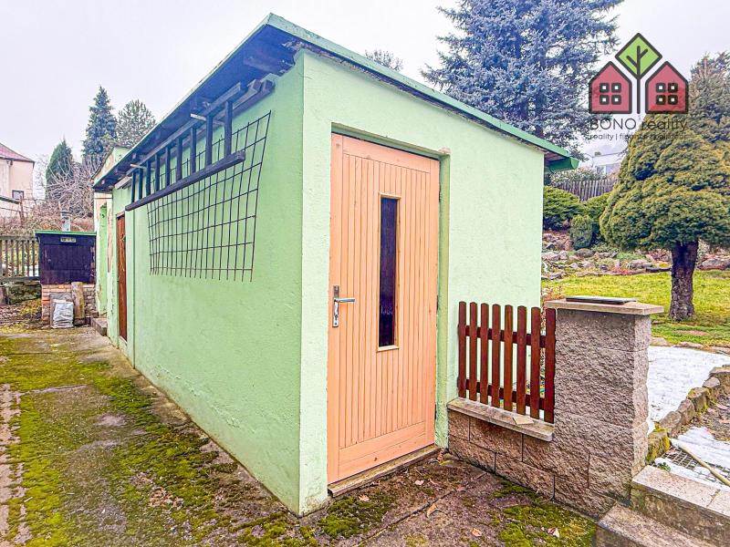 K domu náleží již zmíněná zahrada o rozloze 392 m2. Zahrada je orientovaná do vnitrobloku a poskytuje klid pro odpočinek, relax či zahrádkaření. Součástí zahrady je několik vedlejších staveb -> garáž pro jeden automobil o výměře 23 m2 a zahradní kůlna pro úschovu náčiní i vybavení.