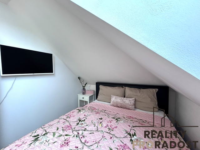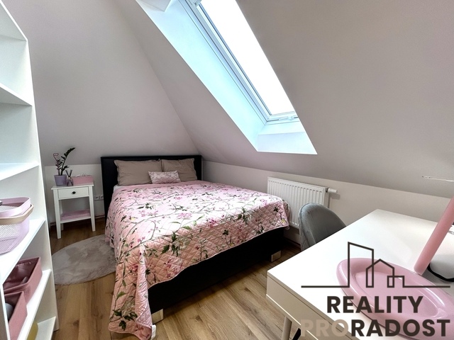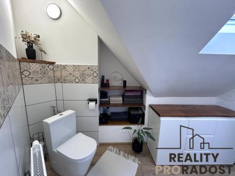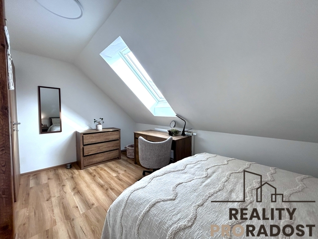 Kompletní a vkusná rekonstrukce – nové podlahy, elektroinstalace, rozvody, kuchyňská linka na míru, střešní okna, kvalitní sanita, nový plynový kotel i topný systém.