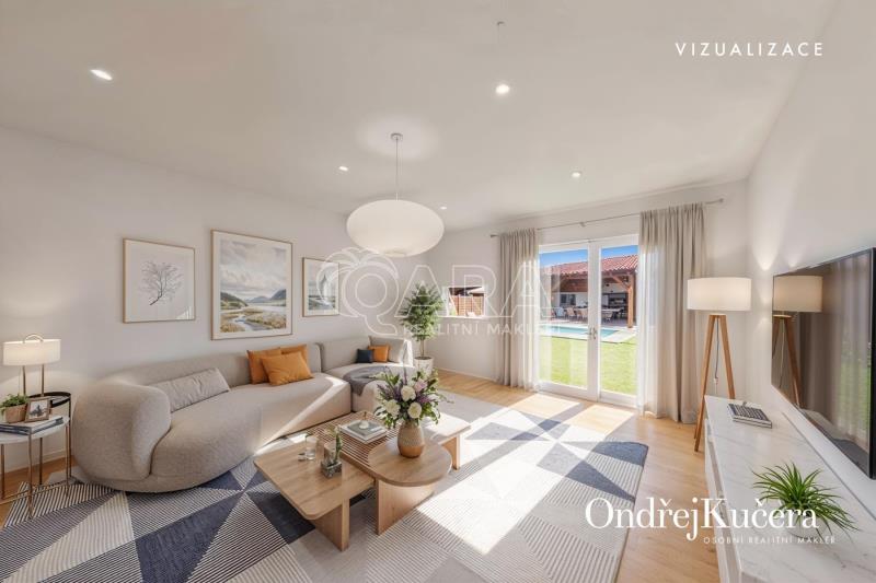 Jsou místa, kam lidé jezdí na víkend, aby si odpočinuli od města. A pak jsou místa, kde takto můžete žít každý den, bez nutnosti někam odjíždět. A přesně taková je obec Lhota. Blízkost jezera s jemným pískem a čistou vodou, borovicové lesy a příjemný klid vytváří prostředí, které dnes není běžné. Okolí zároveň přirozeně vybízí ke koupání v jezeře, procházkám v lese, jízdě na kole i houbaření. Zároveň se jedná o lokalitu s velmi dobrou dostupností do Prahy, kdy na Černý Most se dostanete přibližně za 15 až 20 minut jízdy. Na tomto místě nabízíme samostatně stojící rodinný dům na pozemku o velikosti 796 m². Dům má podlahovou plochu 234 m² a jeho současný stav umožňuje okamžité využití. Zároveň však představuje ideální základ pro vytvoření moderního bydlení. Jednoduchý kubický tvar s plochou střechou je dnes jedním z nejvyhledávanějších architektonických řešení. Tento typ staveb umožňuje vytvořit nadčasové domy s čistými liniemi, velkým množstvím světla a vysokou užitnou hodnotou. Dispozice domu je řešena prakticky a s důrazem na každodenní fungování. V přízemí se nachází vstupní hala, technické zázemí, prádelna, skladové prostory a garáž. V patře je obytná část o dispozici 3+1, tedy dva samostatné pokoje, obývací pokoj, jídelna a kuchyně. Z haly je přímý vstup na prostornou terasu o velikosti přibližně 25 m², která přirozeně propojuje interiér se zahradou. Vše je navrženo pro flexibilní využití. Obytná část se nachází v patře, zatímco přízemí lze přebudovat na plnohodnotnou druhou bytovou jednotku. To otevírá možnosti vícegeneračního bydlení, odděleného prostoru pro hosty nebo kombinace bydlení a investice. Další významnou přidanou hodnotou je samostatná stavba na pozemku o velikosti cca 54 m², kterou lze využít jako další obytný objekt, zázemí nebo prostornou dvojgaráž. Z technického hlediska je dům napojen na obecní vodovod, kanalizaci a elektřinu. Na pozemku se nachází také vlastní studna. Na této nabídce je nejcennější to, že dává budoucímu majiteli možnost vytvořit si zde dům podle vlastního vkusu, potřeb i životního stylu, a to v prostředí, které má dlouhodobou hodnotu a dává smysl i pro další generace. Doporučuji osobní prohlídku. Ondřej Kučera osobní realitní makléř