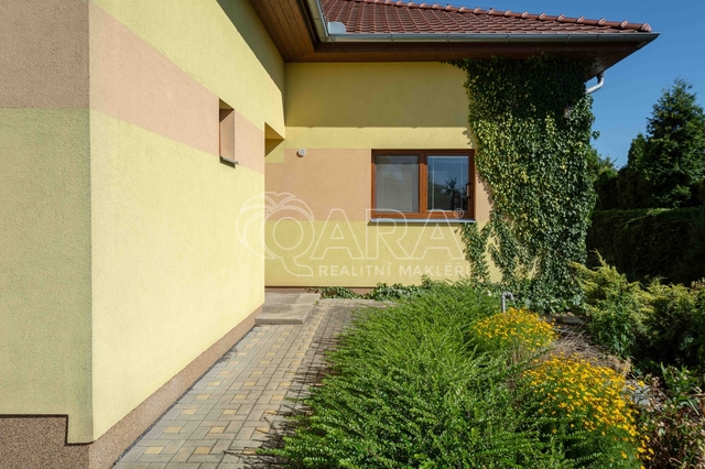 Dispozice přízemí o celkové vnitřní ploše 147,9 m2 + terasa o velikosti 27,6 m2: vstupní hala, chodba, kuchyň spojená s jídelnou, obývacím pokojem a vstupem na terasu, spíž, ložnice s vestavnou skříní a vstupem na terasu, dva menší pokoje, koupelna s vanou a WC, samostatné WC, technická místnost a garáž. Oplocená zahrada s brankou a vjezdovou bránou.