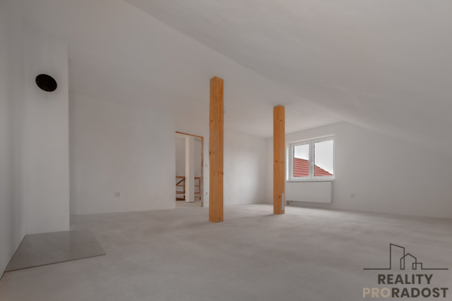 Další velkou výhodou je podkroví, původně plánované jako kancelář, se samostatným vstupem. Já tam vidím hernu pro děti i dospělé, kulečník, ping-pong, posilovnu, virtuální realitu nebo místo pro podnikání. Fantazii se tu meze nekladou.