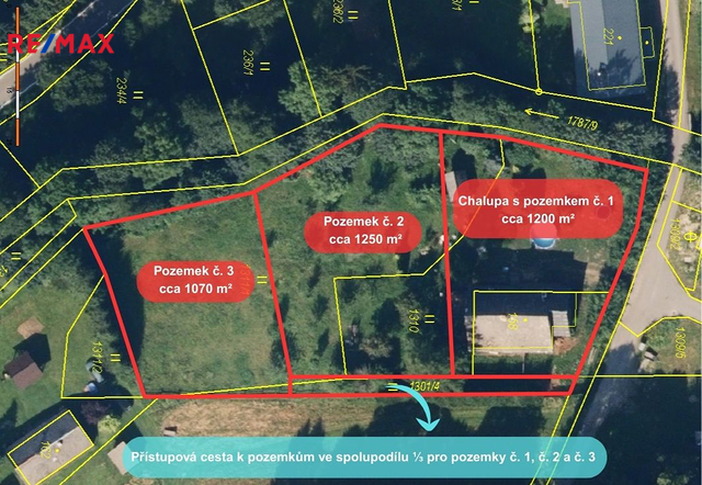 Nabízíme Vám výjimečnou příležitost koupě rodinného domu s pozemky určenými k další možné výstavbě v obci Malá Morava okr. Šumperk, která je vzdálená pouze 8 km od oblíbeného rekreačního areálu Dolní Morava. V současné době je budova využívána jako chalupa s pozemky. Budova (chalupa) o užitné ploše cca 106 m2 (+17 m2 dílna) a zahradním domkem má k dispozici zahradu o celkové výměře 3720 m2 včetně zastavěné plochy a nádvoří. Celá tato plocha je podle platného územního plání vedená jako zastavitelná plocha, tudíž je možné zahradu rozdělit například na tři parcely s přístupovým pozemkem a využít k výstavbě dalších rekreačních objektů viz návrh v inzerci. Budova (chalupa) s dispozicí 4+kk (viz půdorys v galerii fotek) je vytápěna kamny na tuhá paliva ve dvou místnostech a také zrenovovanými kachlovými kamny. Všechna okna v chalupě jsou dřevěná (kastlová) a jako zdroj vody je zde napojení na vlastní studnu, ovšem v obci je zbudován i vodovod. Odpady v chalupě jsou vyvedeny do jímky a napojení na elektřinu je samozřejmostí. Pro více informací o této nemovitosti kontaktujte makléře nabídky. Vhodné jako investice. Zjistíme Vám možnost financování koupě této nemovitosti – bezplatná konzultace s naším finančním poradcem. Více fotografií na stránkách RE/MAX.