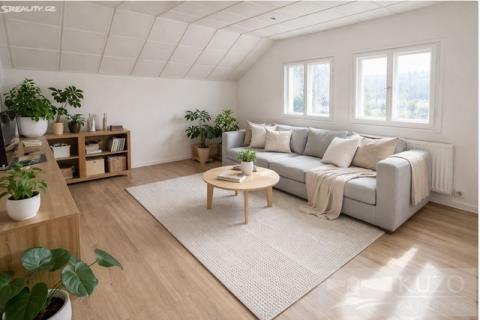 V exkluzivním zastoupení majitele nabízíme k prodeji nepodsklepený samostatně stojící rodinný dům bez č. p. / č. ev., s jedním nadzemním podlažím a obytným podkrovím, s jednou bytovou jednotkou o dispozici 5+1, situovaný v zástavbě rodinných domů v obci Meclov - část Němčice, s přístupem ze zpevněné komunikace p. č. 919 a po částečně zpevněné komunikaci p. č. 876/1. Pozemek je rovinný, rodinný dům je napojen na elektro přípojku a vlastní studnu, odkanalizování je provedeno do jímky. Dopravní dostupnost je zajišťována autobusovými spoji, Němčice leží ve vzdálenosti cca 2,5 km od silnice I. třídy č. I/26 ve směru na hraniční přechod Folmava - Plzeň. Základní obchodní síť a síť služeb (základní a střední školy, městský, stavební a finanční úřad, banky, čerpací stanice PHM, market, sportovní areál, zdravotní středisko a nabídky pracovních příležitostí) jsou v obci s rozšířenou působností - Horšovský Týn ve vzdálenosti cca 4,5 km, nejbližší nemocnice, kompletní obchodní síť služeb jsou v bývalém okresním městě Domažlice ve vzdálenosti cca 7 km. Technický popis: základové pasy jsou kamenné a betonové, svislé nosné konstrukce zděné z cihelného a smíšeného zdiva, střecha sedlová, krytina z vlnitého eternitu, okna dřevěná špaletová, vytápění ústřední s kotlem na tuhá paliva. Dispoziční řešení: 1. NP - zádveří, chodba, schodiště do podkroví, pokoj, kuchyň, koupelna + toaleta, chodba, sklad, spíž, garáž. Podkroví - hala, chodba, toaleta, půda. Stáří rodinného domu je cca 100 let a cca 10 let nevyužívaný k trvalému bydlení. Zastavěná plocha a nádvoří: 373 m2, ostatní plocha: 178 m2, pozemků celkem: 551 m2.