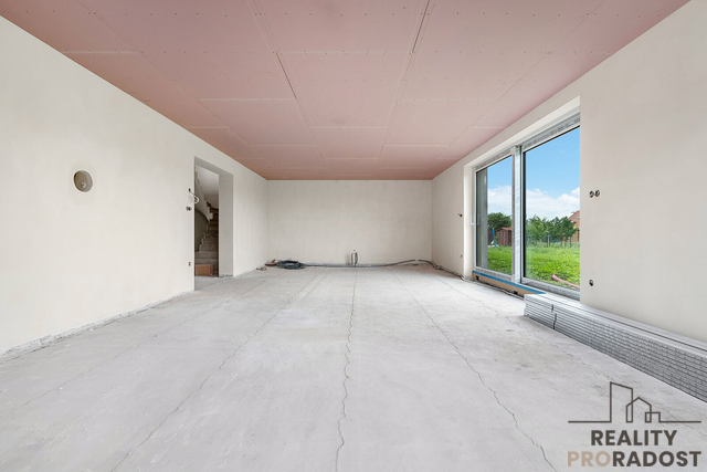 Uvnitř najdete vypínače, zásuvky a kompletní elektroinstalaci, která je připravená na podlahové vytápění, klimatizaci, solární panely, fotovoltaiku, tepelné čerpadlo, bezpečnostní systém, elektrické rolety, kamery a internet. V obývacím pokoji je příprava na krb, který zpříjemní chladné večery. Dům je zateplen a je možné jej dokončit dle přání budoucího majitele.