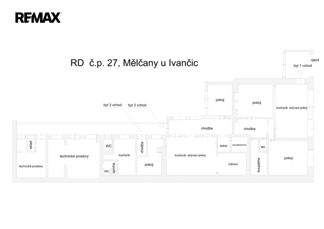 Nabízím k prodeji rodinný dům se třemi samostatnými bytovými jednotkami v klidné obci Mělčany u Ivančic (okr. Brno-venkov).