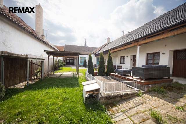 Součástí domu je průjezd do uzavřeného dvora s parkováním pro 2 auta, terasa, dostatek skladových prostor a zahrada pro relaxaci.