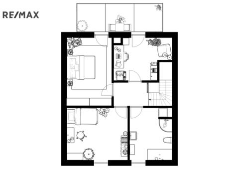 -efektivně řešené patro- tři ložnice/pokoje pro pohodlné fungování, ze 2 vstup na balkon
