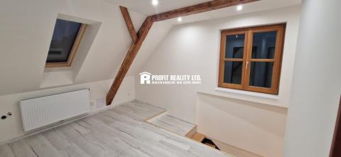 Zprostředkujeme vám prodej rodinného domu ve městě Mirovice, umístěného v klidné ulici Husova, poblíž historického náměstí. Objekt prošel kompletní rekonstrukcí, jen krovy a střešní krytina mají staří 11 let. Dům je z malé části podsklepený. V přízemí se nachází vstupní předsíň, pokoj s přípravou na kuchyňskou linku, obývací pokoj, koupelna s vanou, samostatná toaleta a technická místnost a kotelna. Podlahová plocha přízemí činí 79 m2. V rámci rekonstrukce jsou zde nové podlahy, izolace, podlahová krytina, dlažby, rozvody vody, elektřiny, odpady, plynové topení včetně nové přípojky a kotle, koupelna, příprava pro kuch. linku, okna, dveře, nové stropní trámy, sádrokartonové podhledy + izolace. Nová pojistková skříň. Z předsíně se po schodišti dostanete do podkroví, které se skládá z dvou ložnic se střešními okny, koupelny se sprchovým koutem a toaletou a předsíně, kde lze vybudovat menší kuchyňskou linku. Při rekonstrukci byla zhotovena nová dvojitá skladba podlahy, izolace v předstěnách, zateplení střechy, zateplení štítů, nové rozvody vody, elektřiny, topení, příprava pro malou kuch. linku, nové podlahoviny, sádrokartonové systémy, nová střešní okna dřevěná Velux. Nová pojistková skříň. Zahrada je za domem, s věcným břemenem chůze a jízdy pro vstup na zahradu, z domu je přístupná z obývacího pokoje francouzskými dveřmi. Ve městě Mirovice je kompletní občanská vybavenost.