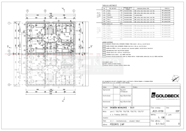 Dům je postaven z kvalitních materiálů – nosnou konstrukci tvoří železobetonový prefabrikovaný systém doplněný o zdivo z pórobetonových tvárnic. Střecha je plochá, zateplená, s tepelnou izolací z EPS. Okna jsou plastová s trojskly v elegantním antracitovém provedení s dubovými parapety z masivu, která podtrhují moderní vzhled domu. Fasáda je obložena páskovými cihlami v odstínech Dover a Ibiza, díky čemuž působí nadčasově a přirozeně zapadá do okolní zástavby.