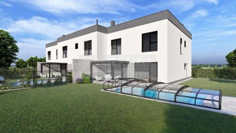 V moderní a prakticky řešené vile, najdete krajní bytovou jednotku o dispozici 5+kk a komfortních 168 m2 vnitřní užitné plochy ve dvou podlažích. Podlahová plocha jednotky je 179 m2. Součástí jednotky je garáž a k tomu navíc je před vilou další soukromé parkovací stání. V okolí domu si budete užívat privátní rovinatou zahradu o výměře 394 m2, která navazuje na venkovní terasu. Celková výměra pozemku, který náleží k této jednotce je 557 m2.