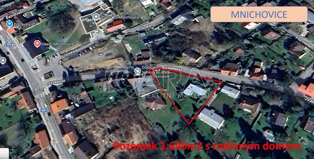 Na krásném a slunném pozemku v centru Mnichovice nabízíme starší, podsklepený rodinný dům (případně vícegenerační) s garáží o užitné ploše cca 145m2. Dům je obklopen rozlehlou zahradou, která nabízí prostor k různým aktivitám. Zastavitelnost je zde 70% !!. V 1PP je garáž a další prostory o celkové ploše 42 m2, kde kromě technického zázemí najdete také velký pokoj, koupelnu a toaletu, takže zde může být další menší samostatná jednotka. V 1NP jsou tři ložnice, jídelna, kuchyň a prostorný obývací pokoj, to vše o celkové ploše 103m2. Dům je napojen na základní sítě - elektřina, kanalizace, obecní vodovod a plyn na pozemku a vlastní kopaná studna. Topení zajišťuje tepelné čerpadlo, nebo elektrický přímotop. Proběhla zde výměna oken a celkově je dům v původním, ale velmi zachovalém stavu. Tento dům je svou pozicí absolutně ideální pro rodinu s dětmi. Na dohled je základní škola s gymnáziem a do pěti minut můžete být na zastávce vlaku. Stejně tak je kousek centrum Mnichovic s mnoha obchody a základními službami. Pro aktivní sportovce je nedaleko fotbalový klub a pozemní hokejisté. Další sportoviště nabízí Šibeniční vrch. Mnichovice jsou výjimečné svou výbornou polohou uprostřed přírody se snadnou dostupností do Prahy autem i vlakem. Další služby nabízí blízké Říčany.
