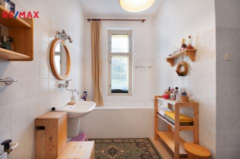 V přízemí se nachází elegantní obývací salón, jehož součástí je jídelní kout umístěný v útulném výklenku, odkud se otevírá pohled na kachlová krbová kamna – pravé srdce domova, které zve k posezení a chvílím pohody. Na obývací část plynule navazuje další prostorný pokoj, který si zachoval svůj původní šarm a lze jej využít jako pracovnu či reprezentativní salon. Další samostatný pokoj má rovněž své kouzlo.