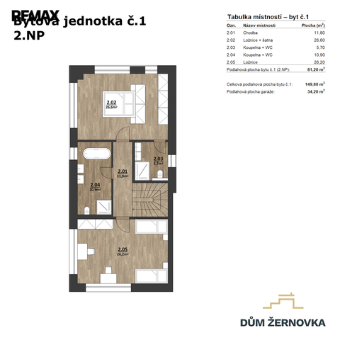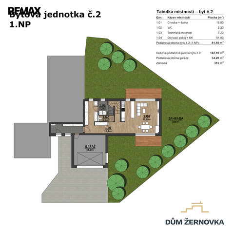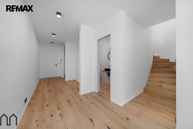 Každé podlaží tvoří samostatná bytová jednotka 3+kk s důrazem na komfort, prostor a soukromí. Přízemí nabízí velkorysý obývací prostor s kuchyní a přímým vstupem na zahradu a terasu. Horní patro disponuje čtyřmi ložnicemi, každá s vlastní koupelnou, což je řešení, které ocení větší rodina i náročný klient.