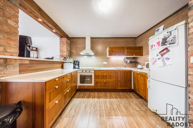 Ve výhradním zastoupení majitelů nabízím k prodeji jedinečný rodinný dům v obci Mutěnice, situovaný na klidné ulici Zahradní. Tento cihlový, patrový dům s dvěma bytovými jednotkami je ideálním místem pro rodiny s dětmi, protože kombinuje pohodlí moderního bydlení s bezpečným a příjemným prostředím. S celkovou užitnou plochou cca 230 m² a zastavěnou plochou cca 200 m² se dům pyšní dostatkem prostoru pro všechny. Dům, který prošel kompletní rekonstrukcí v roce 2010, nabízí moderní vybavení včetně nové elektřiny v mědi, vody a odpadů v plastu, nových omítek a podlah. K vytápění slouží plynový kondenzační kotel, což zajišťuje nízké náklady na energii a efektivní teplo během zimních měsíců. Dům je navíc zateplen, což přispívá k jeho energetické účinnosti. Dispozice domu: 1 patro 4+1 - vstupní chodba - obývací pokoj ( je zde podlahové vytápění) - kuchyň s velkou jídelnou se vstupem na terasu (zde je také podlahové vytápění) - spíž - ložnice - 2 dětské pokoje propojené šatnou - vstup na půdu - koupelna s vanou (podlahové vytápění) - samostatné WC Přízemí 1+1 - kuchyň se vstupem na terasu - 1 velký pokoj - koupelna se sprchovým koutem a s WC - technická místnost s kondenzačním kotlem - sklep - vstup do garáže pro 2 auta Na zahradě je technická místnost s udírnou a zahradní domek. Jedním z hlavních lákadel této nemovitosti je krásná zahrada o rozloze 547 m², která poskytuje ideální prostor pro hry dětí, rodinné grilování či relaxaci pod širým nebem. Zahrada může být také skvělým místem pro vybudování dětského herního koutku, což ocení zejména rodiny s malými dětmi. V blízkosti domu se nachází škola, školka a dětské hřišťe, které zajistí vašim dětem snadný přístup ke vzdělání a prostoru pro aktivní hraní. Lokalita je velmi dobře dostupná nejen autem, ale i veřejnou dopravou, což usnadní každodenní dojíždění. V okolí je velké množství cyklistických tras. Obec Mutěnice je vyhledávanou vinařskou obcí. Pro pohodlné parkování je k dispozici garáž pro 2 auta, což ocení zejména rodiny, které disponují více vozidly. Možnost parkování aut před domem. Tento dům je ideální volbou pro ty, kteří hledají bezpečný a přátelský domov pro svoji rodinu na klidném místě s veškerou občanskou vybaveností v blízkém dosahu. V případě zájmu o prohlídku nás neváhejte kontaktovat.