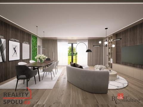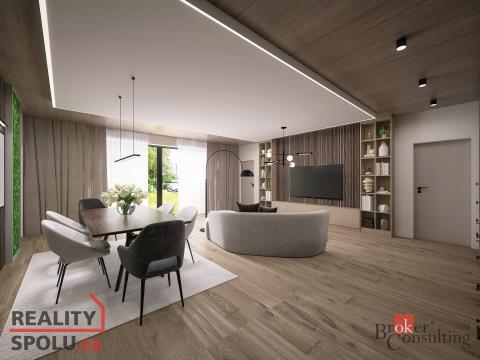 - prostorný obývací pokoj s kuchyňským koutem (42,5 m²) a vstupem do technické místnosti